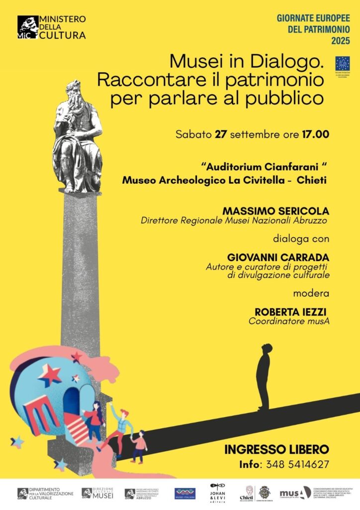 In occasione delle Giornate Europee del Patrimonio, sabato 27 settembre 2025 alle ore 17.00, l’Auditorium del Museo Archeologico La Civitella di Chieti ospiterà la tavola rotonda “Musei in Dialogo: raccontare il patrimonio