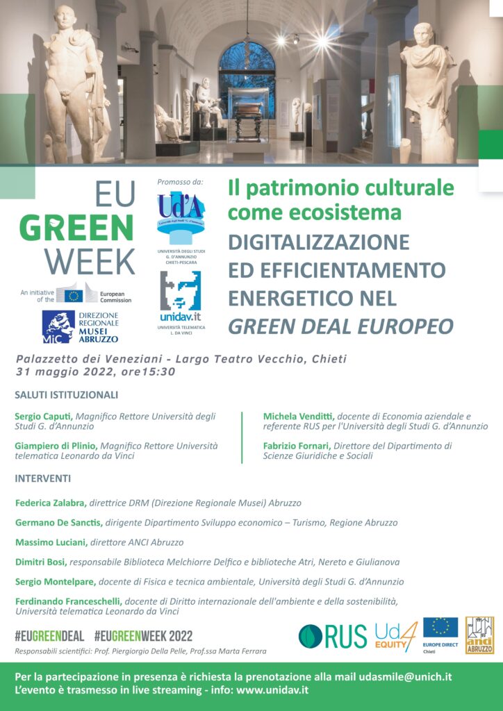 “Il patrimonio culturale come ecosistema. Digitalizzazione ed efficientamento energetico nel Green Deal europeo” è il tema sul quale si svilupperà il convegno previsto per martedì, 31 maggio prossimo, alle ore 15:30, presso
