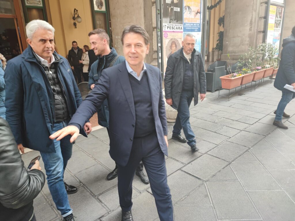 Il tour elettorale a sostegno del candidato presidente della Regione del centro sinistra, Luciano D’Amico, ha portato questa mattina a Chieti l’ex presidente del Consiglio e leader del Movimento 5 stelle, Giuseppe