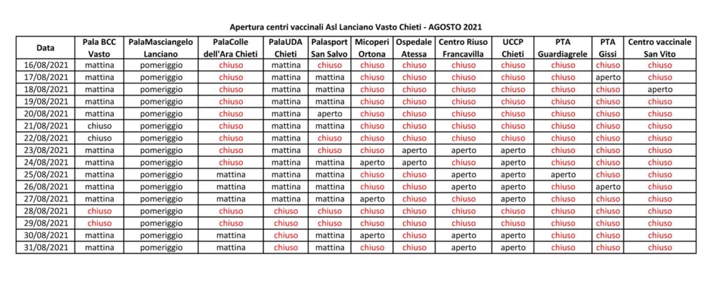 Stretta finale sulla vaccinazione in provincia di Chieti. Settembre sarà decisivo per raggiungere l’80 per cento di popolazione immunizzata, obiettivo fissato dal Generale Figliuolo più che raggiungibile, visto che al momento la