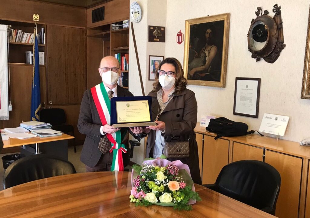 Il sindaco Diego Ferrara questa mattina ha consegnato una targa alla radiologa teatina Raffaella Basilico, per il suo lavoro nel reparto di Radiologia dell’ospedale di Chieti e per il recente incarico che