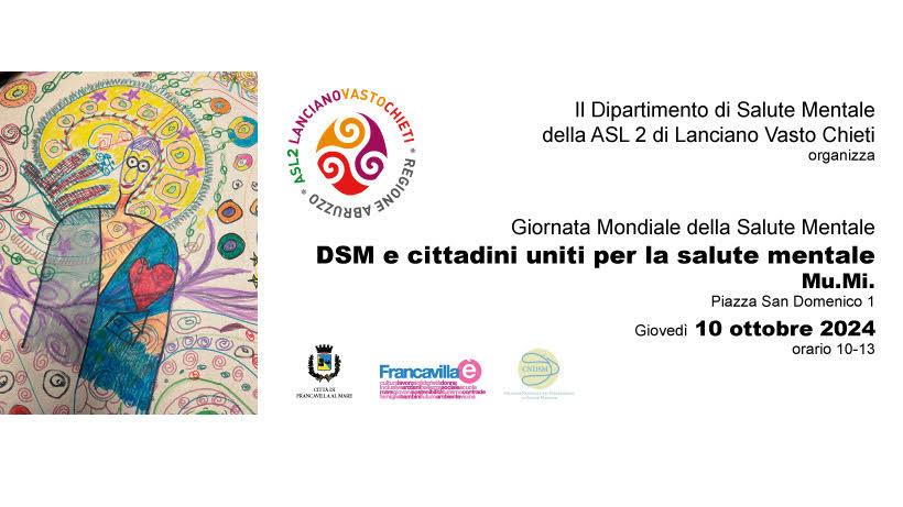 Insieme per la promozione della salute mentale. E’ questo il senso dell’iniziativa promossa dal Dipartimento Salute Mentale della Asl Lanciano Vasto Chieti, diretto da Marco Alessandrini, che si svolgerà giovedì 10 ottobre
