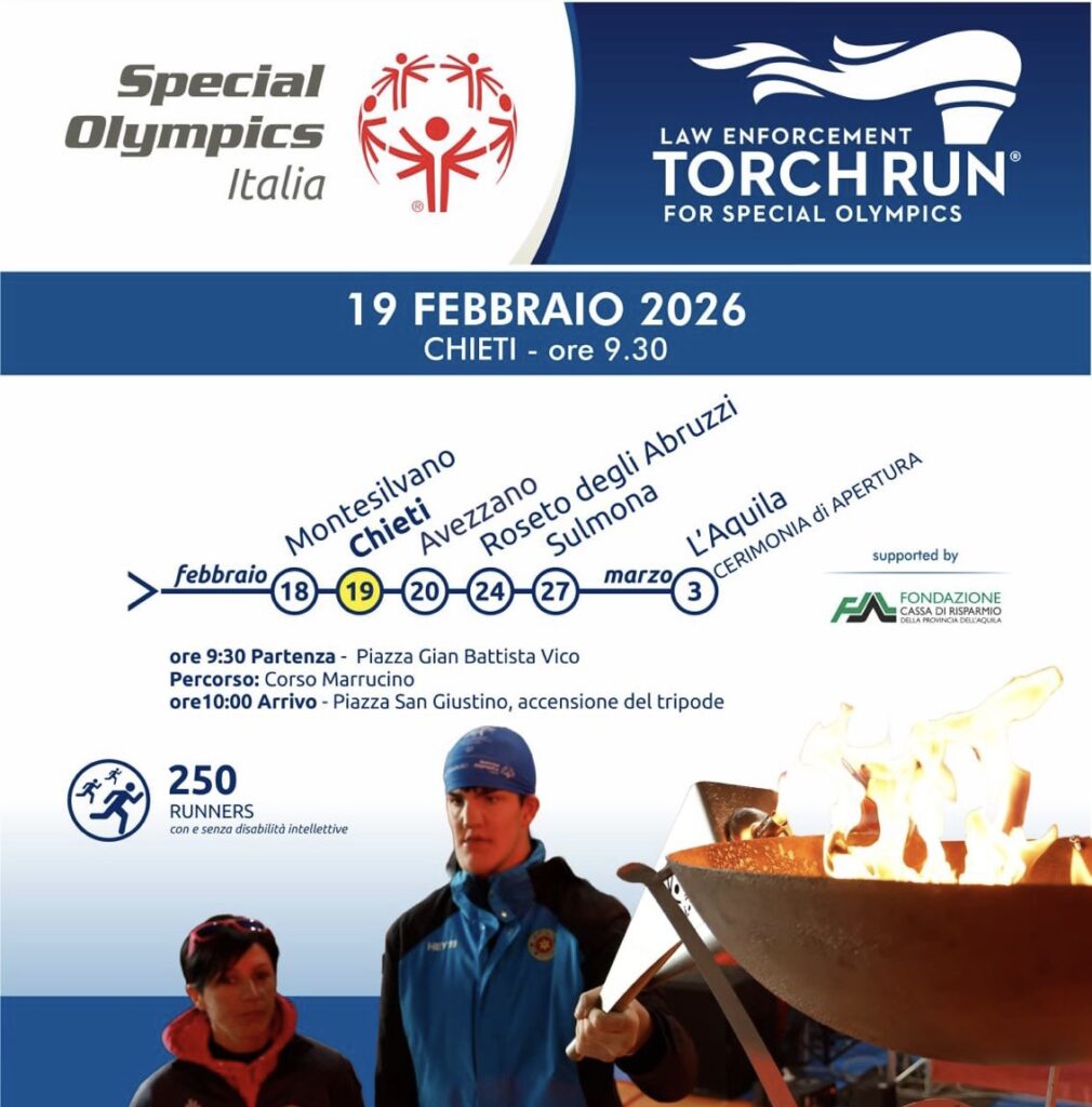 Domani, giovedì 19 febbraio, Chieti sarà teatro di una delle tappe più significative del Torch Run di Special Olympics Italia, la tradizionale staffetta della Torcia della Speranza che attraverserà l’Abruzzo dal 18