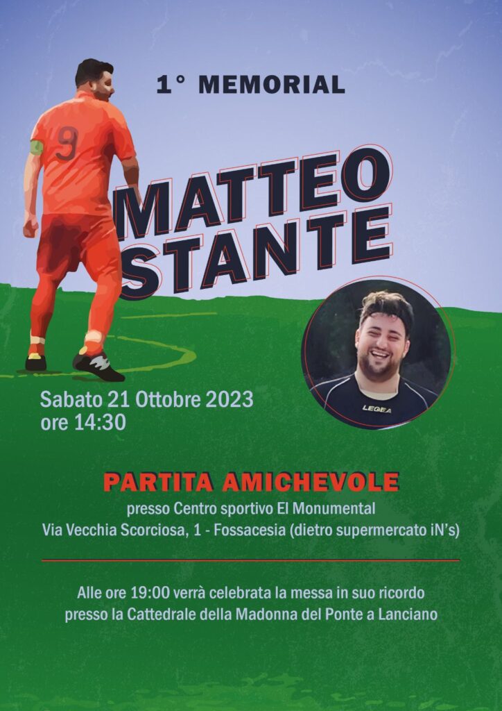 È tutto pronto per il primo “Memorial Matteo Stante”, il giovane assicuratore frentano scomparso improvvisamente lo scorso anno mentre giocava a padel in un centro sportivo di Lanciano. Il memorial si terrà