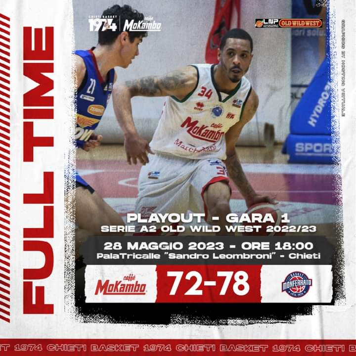 Dopo l’inattesa e durissima batosta subita domenica sera dalla Novipiù Monferrato, la Mokambo Chieti Basket affronta domani sera il secondo round dei playout che valgono la salvezza in A2. Si gioca ancora