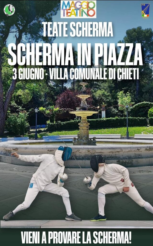 Sabato 3 giugno 2023 ha visto la scherma scendere in piazza in occasione della manifestazione organizzata dal Circolo Teate Scherma: Scherma in Piazza ha animato la Villa Comunale di Chieti per tutta