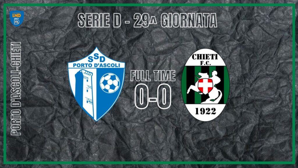 Al ‘Riviera delle Palme’ il Chieti conquista un ottimo punto contro il Porto d’Ascoli. Padroni di casa in vantaggio al 13′ con Sensi, Cesario rimette tutto in equilibrio al 43′. Un pareggio