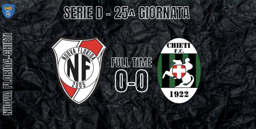Al “Marco Mazzucchi” di Ardea il Chieti pareggia 0 a 0 contro il Team Nuova Florida nella gara valevole per la 25′ giornata di campionato di serie D. Un punto prezioso perché