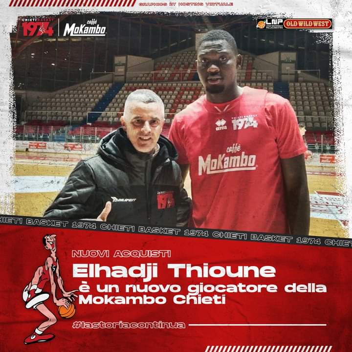 Nuovo acquisto per la Mokambo Chieti basket. Elhadji Thioune, centro di origine senegalese, alto 209 cm per 105 kg, raggiunge la corte di coach Rajola dopo aver iniziato la stagione a Mantova