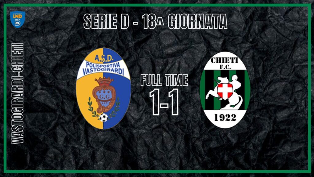Dopo la sosta natalizia riparte il campionato di serie D. Il Chieti, reduce dalla brillante vittoria contro il Fano del 18 Dicembre, fa visita al Vastogirardi, club molisano appaiato a metà classifica