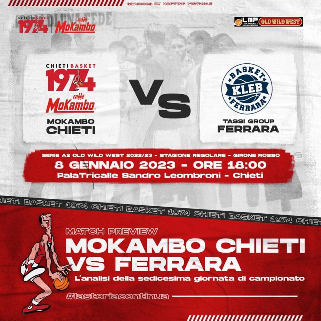 Dopo la cocente sconfitta subita Mercoledì’a Ravenna, la Mokambo Chieti cerca il riscatto ospitando la Tassi Group Ferrara nella sedicesima giornata del campionato di serie A2 Old Wild West. Una gara sicuramente