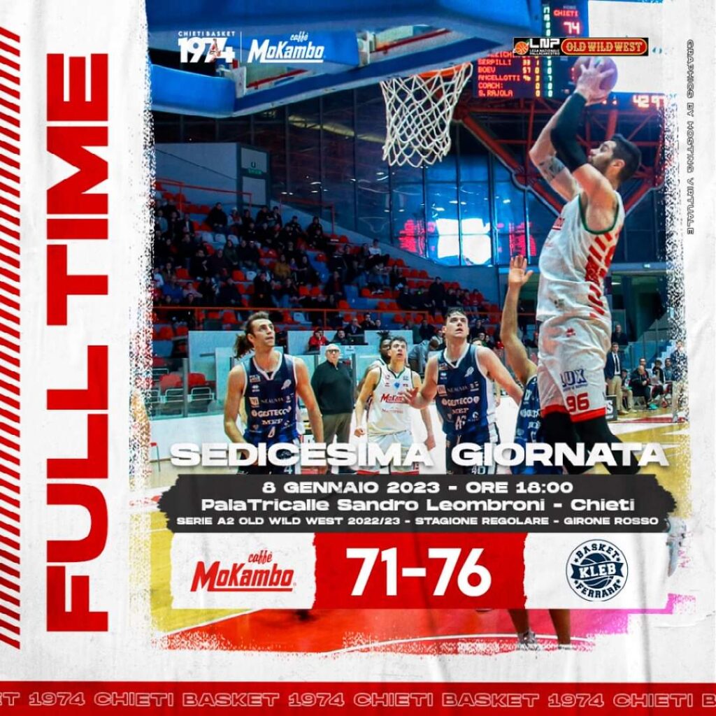 Inizia con una pesante sconfitta il 2023 per la Mokambo Chieti. Al Pala Mauro de Andrè i teatini, nella quindicesima giornata di serie A2 cedono all’Orasì Ravenna per 80 a 60. In