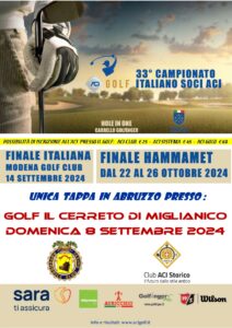 L’Automobile Club Chieti è ‘sceso in campo’ per ospitare l’ultima tappa, l’unica in Abruzzo, del 33° Campionato Italiano dei Soci ACI “ACI Golf”, che si è disputata ieri, domenica 8 settembre, sul green del nuovo Golf Club “Il Cerreto di Miglianico”, diretto da Filippo Di Felice.