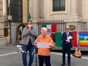 Commovente consegna allo storico teatino Filippo Paziente di una targa da parte del Comune, Anpi e associazioni cittadine di ringraziamento per il suo importante ruolo di costruttore della memoria collettiva. Un vero e proprio abbraccio a piazza Dei Martiri della Libertà, aprile, a un passo dalla lapide in memoria dei partigiani teatini e dopo la cerimonia istituzionale con la Prefettura e associazioni combattentistiche e d’arma che si è svolta con la deposizione di corone sui luoghi della memoria storica cittadina. In piazza dei Martiri della Libertà il discorso del sindaco Diego Ferrara e la consegna a Paziente della targa, momento clou della tre giorni “Resistenza: Memoria al Futuro” che dal 23 ha animato un percorso di costruzione della memoria collettiva a cura dell’Esecutivo e della Presidenza del Consiglio comunale: “Io credo che fra le tante parole che appartengono alla Resistenza e alla sua storia oggi la più importante sia “memoria” – ha infatti sottolineato il sindaco Diego Ferrara nel suo discorso – La memoria ci appartiene, è nutrimento per le nostre radici, una linfa che tiene ben saldo il tronco, ma arriva a tutti i rami, favorendo la nascita e la crescita di quelli più giovani. Con questi tre giorni dedicati alla Resistenza, che hanno avuto un seguito che ci scalda davvero il cuore, noi abbiamo voluto fare proprio questo, nutrire le nostre radici. E la targa a Filippo Paziente, la sua emozione nel riceverla, sono stati il grazie migliore che potessimo, attraverso lui, dare a tutti coloro che sono portatori di pace e costruttori di memoria. Ora più che mai queste testimonianze sono importanti, perché la crisi ucraina ci sta facendo vivere l’importanza di essere portatori di pace e di libertà e ci riporta al valore della resistenza da qualsiasi invasore. Da Chieti il messaggio è partito forte e chiaro e lo faremo crescere per consegnarlo ai giovani”. La città di Chieti stamane era presente anche alla cerimonia che si è svolta al Sacrario della Brigata Maiella a Taranta Peligna, con l’assessore Chiara Zappalorto, per esprimere la partecipazione ferma e sentita della città ai 77 anni dal primo 25 aprile della storia d’Italia e ai 100 anni dalla nascita del Maggiore Domenico Troilo, vice comandate della Brigata Maiella, un nome caro che ha incrociato in modo importante anche la nostra storia cittadina. Due le tappe, la prima fra ANPI e Spi CGIL, con la partecipazione del segretario generale nazionale dello Spi Cgil, Ivan Pedretti e poi la celebrazione al Sacrario, a cura della Fondazione Brigata Maiella, a cui ha preso parte l’ambasciatrice della Polonia in Italia, Anna Maria Anders, figlia del generale Władysław Anders che guidò le truppe polacche per la liberazione dell’Italia e al fianco del quale operò la Brigata Maiella in Abruzzo, per sottrarre la regione al dominio tedesco. Le associazioni che hanno collaborato a “Resistenza: Memoria al Futuro”. Hanno reso possibile la realizzazione del calendario della tre giorni di Liberazione le associazioni: Libera presidio di Chieti, 360 Gradi, Labirinti Teatro, Legambiente di Chieti, Unione degli studenti, Jamè, Slow Food Chieti, Da grande voglio crescere, Fridays for future Chieti, Amnesty International Chieti, WWF Chieti-Pescara, Music & Arts Academy di Giuliano Mazzoccante, Teatelier, Comitato territoriale Arcigay Chieti “Sylvia Rivera”, Libridine, Unione Sindacale di Base, Cisl, Uil, Cgil, Mediterranea Saving humans, Left, Libreria Giiunti al Punto Chieti, Cuntaterra, Speleo Club Chieti, Libreria dei piccoli rimedi, De Luca. A tutti i rappresentanti va il grazie dell’Amministrazione.