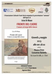 L’Associazione Culturale Teate Nostra organizza, giovedì 4 maggio 2023 alle ore 18 presso il Museo D’Arte Costantino Barbella di Chieti, la presentazione del libro di Licio Di Biase “Fronte del cuore. L’amore ai tempi delle trincee”.