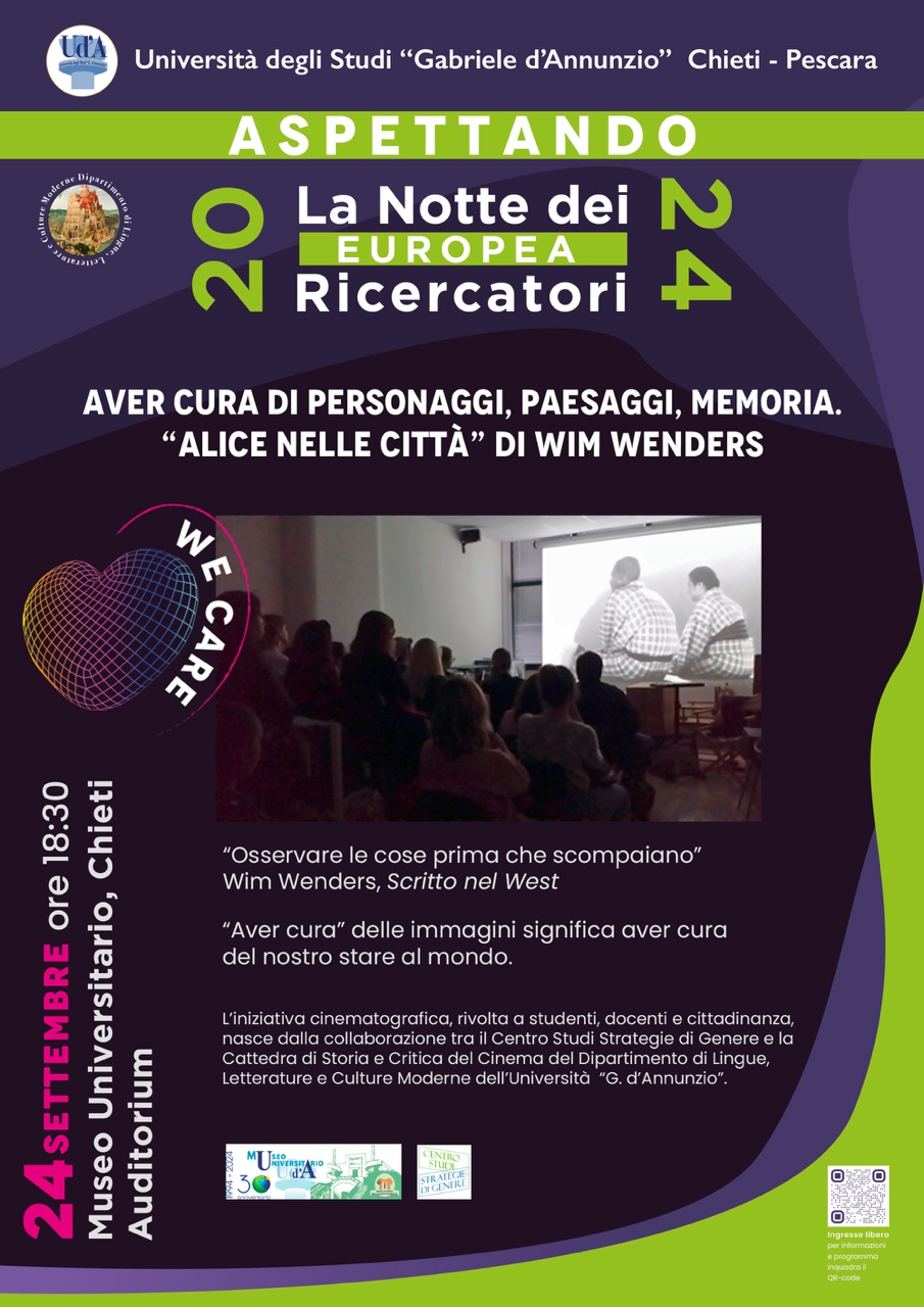 Aver cura di personaggi, paesaggi, memoria. Proiezione del film: “Alice nelle città”, di Wim Wenders Chieti – Museo Universitario – 24 settembre, ore 18.30