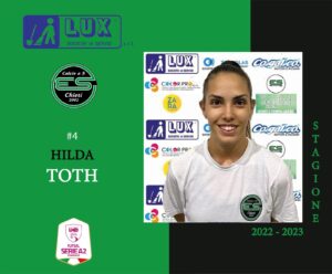 A soli 20 anni, Hilda Toth può vantare un curriculum di tutto rispetto. Dopo aver collezionato presenze in A2 con le casacche di PMB Futsal Roma e Futsal Perugia e una convocazione nella Nazionale del suo Paese, lo scorso anno ha fatto parte della rosa del Kick Off di San Donato Milanese (che milita nella massima serie), sdoppiandosi tra prima squadra e under 19, formazione trascinata fino alla finale Scudetto con la fascia di capitano al braccio e la 10 sulle spalle. «Ho deciso di trasferirmi in Abruzzo per avvicinarmi al mio ragazzo – dichiara la giovane laterale -. È stato lui a consigliarmi di scegliere la Lux dato che conosceva le mie esigenze, ero alla ricerca di una nuova sfida che mi consentisse di proseguire nel mio percorso di crescita e al contempo continuare a divertirmi. In queste settimane ho capito che è stata la scelta giusta, perché vedo nelle altre ragazze la stessa voglia di migliorarsi, un gruppo fantastico che oltre a dimostrare determinazione e dedizione al lavoro riesce sempre a strapparti un sorriso, merito soprattutto del Mister e di tutto lo Staff. Continuando a lavorare sodo potremo toglierci parecchie soddisfazioni, perché abbiamo le carte in regola per giocarcela con tutte, a partire dalla mia ex squadra, il Perugia, che compete in questa categoria da anni, per cui occorrerà partire con la giusta concentrazione».