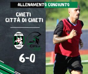 Ancora sei gol del Chieti nel terzo allenamento congiunto. Chieti-Città di Chieti è finita 6-0, stesso risultato del test sostenuto contro il Rapino. Altra festa a tinte neroverdi, il Citta di Chieti milita in 2a categoria. Si è giocato sul campo del Comunale di Pescasseroli. Oggi a segno nomi “pesanti”: Ardemagni (2), Mancini (2), Spinelli e Barlafante. Sabato, ma a Rivisondoli, asticella delle difficoltà posta decisamente più in alto: avversario sarà il Giugliano (serie C). Il collaudo chiuderà il periodo di preparazione nella montagna del Parco Nazionale. Dopo la pausa di ferragosto, il lavoro riprenderà a Manoppello.