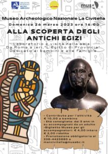Domenica 26 Marzo è in programma alla Civitella una giornata di giochi, spettacoli e laboratori storici. Alle ore 10 sono previsti percorsi di visita ai siti archeologici del Teatro e dell’Anfiteatro romano per approfondire il tema degli spettacoli nel mondo romano e conoscere i monumenti che li ospitavano. Il costo per la guida è € 6,00, l’ingresso al museo € 4,00, ridotto € 2,00. Nel pomeriggio alle ore 16:00 sono previsti laboratori e visite alla scoperta degli antichi egizi destinate ai bambini e a tutta la famiglia. Il costo attività è di € 10.00 a bambino (gratuito per gli accompagnatori), mentre i bglietti di ingresso al museo € 4.00 intero e € 2,00 ridotto. E’ obbligatoria la prenotazione.