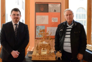 Il Maestro Giuseppe Di Iorio, socio dell’Associazione Arabona e componente del Gruppo Mostre d’Arte, noto presepista e artista di fama europea che espone i suoi bozzetti artistici realizzati con la canna vegetale raffiguranti le statue del Venerdì Santo a Chieti.