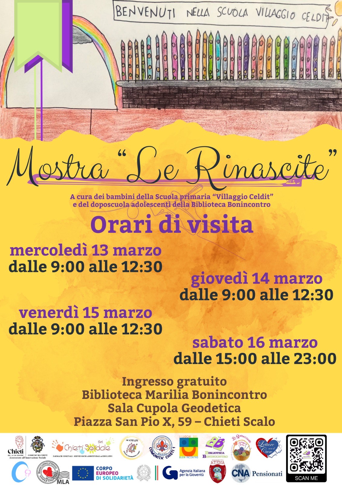 Vi invitiamo a partecipare e visitare la mostra “LE RINASCITE”, allestita dai bambini della Scuola Primaria “Villaggio Celdit”, presso la Biblioteca “M. BONINCONTRO”, in piazza San Pio X, Chieti Scalo.