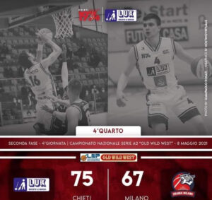 Primo successo (75-67) della Lux Chieti Basket. Il quintetto teatino ha battuto oggi pomeriggio al PalaLeombroni l’Urania Milano. Si tratta della prima vittoria giunta nel primo turno di ritorno del Girone giallo della fase ad orologio di serie A/2. Partita dominata dalla Lux che ha sfruttato la gran giornata di Paulius Sorokas (21 – 6/12, 1/3) e Davide Meluzzi (14 – 3/7, 2/6), ma c’è stata anche una migliore precisione generale in fase conclusiva, anche dalla lunga distanza. Non sono bastate ai milanesi le buone prove di Wayne Langston, Giorgio Piunti e Matteo Montano.