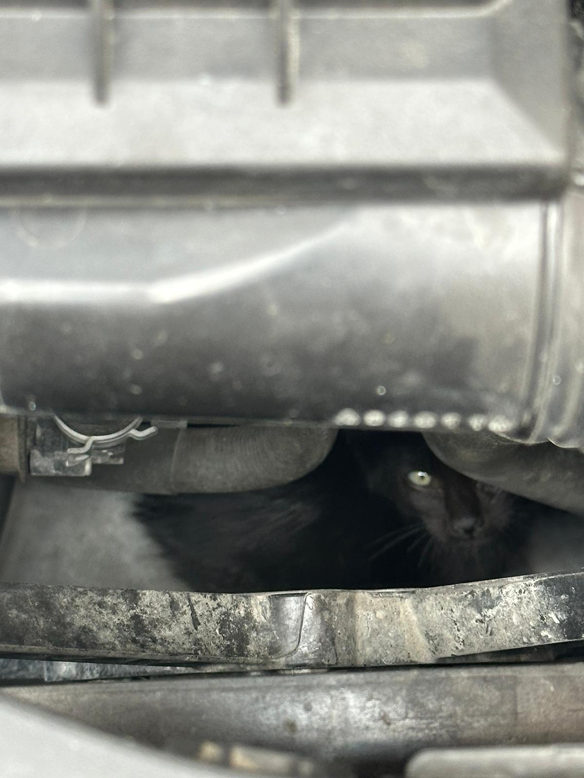 Gattino incastrato nel motore di un auto, salvato dai vigili del fuoco