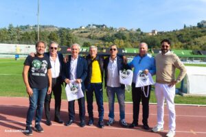 PREPARTITA. Bellissimo prologo prima del via. Il Comitato per il Centenario del Chieti (1922/2022) ha premiato tre neroverdi del passato.