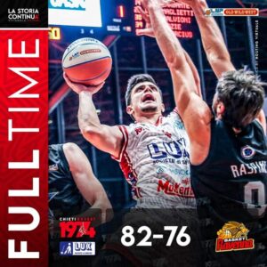 Stavolta si può anche parlare di impresa. Il successo (82-76) conquistato stasera dalla Lux Chieti al Palatricalle “Sandro Leombroni” contro l’Orasì Ravenna ha infatti i contorni di un successo straordinario perché conquistato a spese della vice capolista del campionato. Confronto perciò temutissimo, apprensioni che sono sembrate ben fondate per metà gara quando i biancorossi di coach Maffezzoli sono andati all’intervallo lungo sotto di 9 punti: 35-44. Nella terza e quarta frazione del match la forte reazione di Meluzzi e compagni fino all’esaltante volata conclusiva. Due punti pesanti in chiave salvezza e soprattutto una prova che restituisce fiducia guardando ai prossimi impegni, “una prestazione da stropicciarsi gli occhi” come si legge nel sito del club. Per la Lux quattro giocatori in doppia cifra: Amici 16, Sims 14, Meluzzi 19,Jackson 10. Agli ospiti non sono bastati i 18 di Tilghman, i 14 di Cinciarini e i 20 di uno scatenato Sullivan. I romagnoli di coach Lotesoriere perdono il secondo posto (ma hanno una partita da recuperare) a beneficio di Verona.