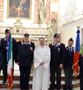 Oggi a Chieti nella chiesa di San Domenico al Corso, il Parroco della SS. Trinità don Claudio Pellegrini ha celebrato la Santa Messa di precetto di Pasqua organizzata dall’Associazione Nazionale Carbinieri Sezione di Chiet, intitolata al maresciallo Franco Lattanzio e presieduta dal carabiniere dottor Mario Colantonio, a cui hanno partecipato, oltre al Direttivo di Sezione e ai soci affettivi, anche la rappresentanza delle Benemerite e del Corpo Volontari di Protezione Civile presieduto dal C.re dottor . Leondino Di Lauro. Sono intervenuti i graditi ospiti il Tenente Colonnello Pierluigi Cappare’ vice comandante provinciale CC.Chieti, il Coordinatore Provinciale ANC Chieti C.re avvocato Paolo Tomassetto e la rappresentanza della Sezione ANC di Atessa presieduta dal C.re Giammarco D’Amico. Tutta la cerimonia è stata animata dai canti dell’apprezzato coro “Ecco quel che abbiamo” operante in parrocchia da circa 16 anni. Dopo la celebrazione che si è conclusa con la tradizionale e commovente Preghiera del Carabiniere, il Parroco ha “raccontato” ai presenti la storia religiosa ed architettonica di San Domenico al Corso ,spiegando con apprezzato dettaglio le numerose opere d’arte che arricchiscono la Chiesa. A tutti gli intervenuti ed i partecipanti è andato il saluto ed il ringraziamento del Presidente di Sezione che ha augurato una Serena Pasqua a tutti gli Associati.