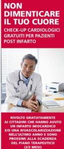 La Fondazione per il Tuo cuore dei cardiologi ospedalieri ANMCO, da sempre attiva per progetti di prevenzione cardiovascolare, ha ideato la 1° Campagna Nazionale di prevenzione Secondaria, Non dimenticare il Tuo cuore, un’iniziativa nazionale gratuita rivolta ai pazienti che hanno avuto un infarto miocardico e/o una rivascolarizzazione negli ultimi due anni o sono prossimi alla scadenza del piano terapeutico.