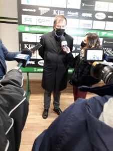 Lucarelli e i giocatori non parlano. A fine partita il patron ha confermato questo silenzio, fino a nuovo ordine sarà lui a rilasciare dichiarazioni (“oppure il presidente Mergiotti” la precisazione). Intanto Giulio Trevisan ha annunciato che in settimana arriverà un nuovo difensore per fronteggiare l’emergenza nel reparto. “Abbiano tutti e tre i difensori over fuori uso e non conosciamo i tempi del loro recupero. Quest’anno con i difensori non siamo fortunati, quindi prevediamo a stretto giro un nuovo arrivo” ha dichiarato il patron. “Devo però dire che i giovani che oggi hanno presidiato la zona difensiva si sono molto ben comportati, mi riferisco a Di Renzo e Consorte entrambi del 2002. La partita potevamo anche vincerla visto il numero delle occasioni fallite, penso soprattutto all’incredibile traversa colpita da Pietrantonio. Perciò non sono soddisfatto del pareggio, il Chieti meritava qualcosa di più”.
