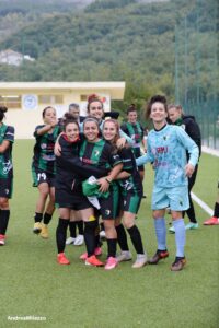 Una partita che ha regalato emozioni fortissime. A 10 minuti dalla fine le ragazze neroverdi erano sotto di una rete sul campo della Roma Decimoquarto. All’81’ e al 91′ ecco le due reti di un successo tanto sofferto quanto pesante. Difficile e piena di palpiti, conquistata all’ultimo respiro, ma è arrivata la sesta vittoria consecutiva. Il Chieti Calcio Femminile realizza a Roma un’impresa frutto del coraggio, della caparbietà e della consapevolezza nei propri mezzi al termine di una partita durissima contro un avversario rivelatosi molto più agguerrito del previsto. Grande protagonista Alessia Stivaletta con un gol e un assist, ma tutta la squadra allenata da Lello Di Camillo è da elogiare per la eccezionale prestazione fornita.
