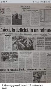 Sono passati 20 anni ma il ricordo custodito nel cuore dei tifosi neroverdi è vivo come nessun altro. Il 9 settembre 2001 il Chieti conquistava un successo storico (sì, stavolta è da definire con quest’aggettivo quell’autentico capolavoro sportivo) nel derby contro il Pescara: 1-0. Paolo Zaccagnini l’autore del gol finito in un posto nobile nell’archivio della storia neroverde. In panchina c’era il grande Piero Braglia che così torna a quella mitica giornata: <Mi fa piacere aver lasciato ai tifosi del Chieti e alla città qualcosa di bello da ricordare. La mia famiglia ed io ci siamo trovati benissimo a Chieti, è stata un’esperienza umana e professionale che non ho dimenticato, i ricordi mi sono molto cari. Quella vittoria in un derby tanto sentito resta una pagina molto importante anche della mia lunga carriera. Auguro il meglio al Chieti e ai suoi tifosi”.