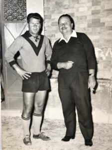 Tutta da scoprire invece la bella figura di Giuseppe Farina nato e morto a Recanati (4/7/27 – 23/9/95). Ala nel Chieti della stagione 48/49 disputò 32 partite realizzando 13 reti. Dopo quell’eccellente torneo passò in B all’Udine se e conquistata la promozione in maglia bianconera friulana giocò il suo primo campionato in serie A. Sempre nella massima divisione è stato poi in forza alla Sampdoria e al Torino, giocando come terzino. Complessivamente Farina vanta 297 presenze in serie A e 3 reti (23/3 in B). Ha detenuto a lungo il record delle presenze consecutive in serie A (219) poi battuto da Dino Zoff. Ha giocato anche in Nazionale. Grande ex neroverde, visse anche un evento particolarmente doloroso. La domenica del 2 marzo 1958, mentre giocava con la maglia della Samp contro il Bologna, tra lo stupore degli spettatori improvvisamente abbandonò il campo per correre in ospedale. Lo avevano avvisato che lamoglie Ida purtroppo era in fin di vita dopo aver dato alla luce un bimbo. Quel bimbo che si chiama Giampiero ed è stato un importante dirigente del Gruppo Fiat, da poco in pensione, (ha per secondo nome Ido in ricordo della mamma) domenica ritirerà la targa in memoria del papà, recanatese ex neroverde.