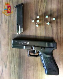 Gli agenti della Polizia di Stato di Chieti hanno arrestato un giovane pregiudicato di 22 anni che la scorsa notte a Chieti, in preda ad uno stato di alterazione psicofisica, dopo aver litigato in casa con la madre, è andato in strada impugnando una pistola che, solo a conclusione dell’intervento, si è appurato essere una fedele riproduzione in metallo di una pistola semiautomatica, priva del tappo rosso. Gli agenti, allertati dapprima dalla donna e poi da alcuni vicini, che avevano udito dei colpi provenire dalla strada esplosi dal ragazzo prima dell’arrivo della pattuglia, hanno immediatamente rintracciato il giovane che ha puntato l’arma contro di loro ponendo in atto, contemporaneamente, atteggiamenti di sfida e di violenza, che hanno costretto gli agenti a sparare un colpo in aria a scopo intimidatorio. Il giovane a questo punto è fuggito dando le spalle ai poliziotti e poco dopo si è svoltato sparando un colpo a salve contro di loro, ma è stato prontamente bloccato ed ammanettato dagli agenti. Solo la prontezza di riflessi ed il sangue freddo degli operatori della Squadra Volante hanno permesso di evitare il peggio senza che alcuno rimanesse ferito Il ragazzo è stato arrestato per violenza, minaccia e resistenza a pubblico ufficiale aggravate con l’uso delle armi e sarà processato per direttissima nella giornata di domani. L’arma, le munizioni ed i bossoli esplosi recuperati in strada, sono stati posti sotto sequestro, dopo essere stati adeguatamente repertati dal personale della Polizia Scientifica intervenuto sulla scena del crimine.