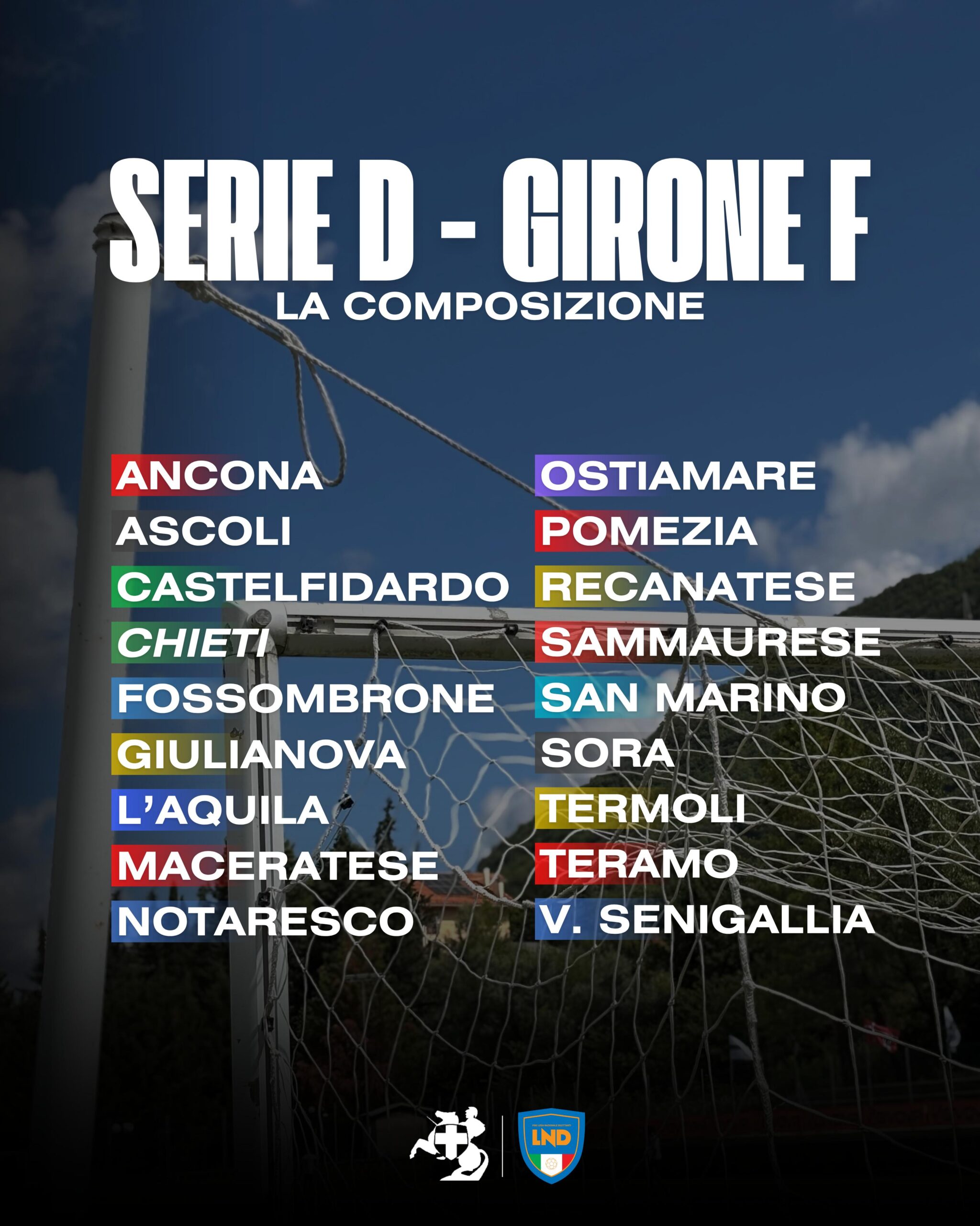 IL GIRONE F DI SERIE D: LE RIVALI DEL CHIETI L’AQUILA-CHIETI IL 31 AGOSTO IN COPPA ITALIA