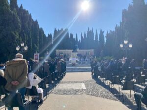 Giornata di commemorazione dei defunti nel cimitero di S. Anna dove, presenti autorità civili, militari e religiose, si è svolta la celebrazione dedicata ai caduti civili e militari presso dove il Sacrario Militare. Sono intervenuti il sindaco Diego a Ferrara, il presidente del Consiglio comunale Luigi Febo, il vicesindaco Paolo De Cesare, la Comandante della Polizia Municipale Donatella Di Giovanni, che insieme al Prefetto, al Questore e a tutti gli altri rappresentanti delle forze dell’ordine e alla Protezione civile, hanno partecipato alla funzione officiata dall’arcivescovo Bruno Forte e alla deposizione delle corone al Sacrario.