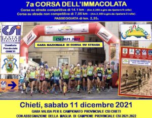 Si terrà sabato 11 dicembre dalle ore 10 l’edizione n. 7 della Corsa dell’Immacolata a cura del Centro Sportivo Italiano teatino e con il patrocinio del Comune di Chieti. Oggi la presentazione con il sindaco Diego Ferrara, l’assessore allo Sport Manuel Pantalone e Mimmo Puracchio, presidente del CSI Chieti. “Si tratta di una gara storica, sono felice che riprenda e che attraversi la città in un periodo di tutela, ma anche di festa – dice il sindaco Diego Ferrara – sarò lieto di seguire come medico la corsa, rispondendo all’invito del Csi e perché l’ambito sanitario abbia tutta l’attenzione che merita, sia per gli atleti che per il rispetto delle tutele anti covid. L’Amministrazione è pronta a fare la sua parte, continuando un cammino di sinergia fra Csi e istituzioni che ha regalato grandi emozioni alla città”. “L’Amministrazione sta lavorando già da un anno per la piena riattivazione della funzione sportiva della Città – dice l’assessore allo Sport Manuel Pantalone – il ritorno di un evento bello e coinvolgente come la Corsa dell’Immacolata ci spinge a guardare oltre la pandemia, a un futuro in cui le manifestazioni servono a sostenere la città a renderla una tappa del circuito nazionale e internazionale degli eventi sportivi, che ci aiuta a fare marketing del nostro territorio, portando flussi di visitatori ed economici alla nostra filiera turistica e ricettiva. A correre, poi, sarà anche un evento amato dai teatini, ma frequentato anche da chi non è nato in città, che ha guadagnato fama e affetto grazie ai valori di inclusione e di sana competizione che sono insiti nello sport”. “Per la corsa è un bel ritorno – conclude Mimmo Puracchio, motore del CSI – convinti come siamo che, in tempi di pandemia e con la ripresa dei contagi da Covid 19, bisogna comunque riprendere una “vita sociale”. Bisogna farlo anche nel rispetto degli altri e per questo abbiamo provveduto a rivedere il percorso e, data la natura collinare della nostra città, a modificare la lunghezza della Corsa dell’Immacolata portandola a 2,350 km a giro.  Si tratta di una corsa storica, iniziata intorno agli anni ’70 e portata avanti anche in condizioni estreme, un anno persino con la neve, perché a muoverla era la voglia di esserne parte. Con la gara riprenderanno anche le altre attività CSI, a partire dalla Maratona Città di Chieti, che da Chieti Scalo sale per i colli del territorio; il palio cittadino di pallacanestro e una serie di altri piccoli e grandi eventi che vogliamo far diventare fiore all’occhiello della vita sportiva teatina. Non ultima la cultura legata allo sport, utilizzando la corte sottostante la sede del Csi in piazza San Giustino, che vorremmo far divenire scenario di concerti con la bella stagione. Tornando alla corsa, incassiamo un medico di gara d’eccezione con il sindaco e invitiamo in tanti a iscriversi. Verranno premiate le prime 5 assolute e i primi 5 assoluti, nonché i primi cinque di tutte le categorie. Alle prime tre assolute ed ai primi tre assoluti verrà garantita l’iscrizione gratuita a tutte le gare del CIRCUITO CSI CHIETI 2021/2022, inoltre verranno premiati i primi cinque gruppi con maggiori iscritti.