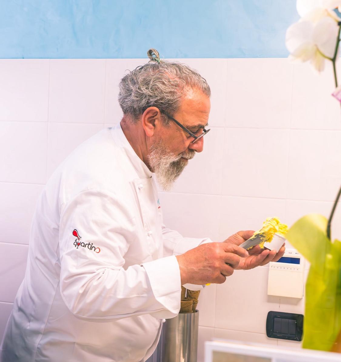 Loris Montanaro, in passato impegnato in diversi paesi del mondo come Program manager di Leonardo, un gruppo industriale internazionale che realizza capacità tecnologiche in ambito Aerospazio, Difesa e Sicurezza, è voluto tornare nella sua terra per riportare le sue esperienze e i suoi vissuti a Chieti. Si definisce un ambasciatore del suo territorio, che cerca di rilanciare con la sua attività. Ha aperto il suo primo locale “Il Quartino”  quasi dieci anni fa e, negli ultimi mesi, ha avviato “Scilò gelateria contemporanea”. <<Vogliamo celebrare l’autenticità dei sapori abruzzesi attraverso gelati artigianali, prodotti con i metodi tradizionali. Contemporaneo significa proprio questo: guardare alla tradizione, volgendosi avanti, sperimentando. >> – dice Montanaro.  Le piccole aziende locali stentano a decollare, come è stato evidenziato da Cresa – Centro Studi dell’Agenzia per lo Sviluppo della Camera di Commercio del Gran Sasso d’Italia. Sono soprattutto le piccole attività commerciali ad avere maggiori problematiche. << Coniugando qualità della materia prima, ricerca e storie da raccontare, seleziono i miei prodotti. Mi piacerebbe rieducare il palato dei miei clienti ai sapori della nostra terra, sfidando la standardizzazione a cui siamo abituati, con alimenti ultra-processati e industriali, valorizzando anche il lavoro dei nostri agricoltori e allevatori e delle piccole imprese del territorio >> – sottolinea ancora Montanaro, e incalza –   << sono indispensabili studio e tanta ricerca, anche per trovare il modo di esaltare le peculiarità di ogni materia prima. >>