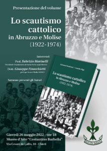 Dopo la presentazione di “Chieti e l’Abruzzo Citeriore nel Settecento”, la scorsa settimana al Teatro Marrucino, domani, giovedì, lo scrittore e storico teatino Aurelio Bigi sarà al Museo Costantino Barbella (ore 18) per presentare il volume “Lo scoutismo cattolico in Abruzzo e Molise (1922-1974)” di cui è autore insieme con Giovanni Santucci. Interverranno Fabrizio Marinelli, professore, presidente della Deputazione di Storia Patria in Abruzzo, e Giuseppe Finocchietti, già capo scout d’Italia Agesci.