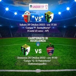 Le altre partite. Oggi alle 17.30 sul campo di Castel di Lama (Ascoli Piceno) Ascoli-Chieti per il campionato Under 17. Domani in Eccellenza (ore 19) a Lettomanoppello Chieti-L’Aquila.