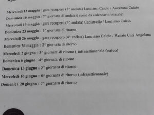 Prossimo turno (9 maggio): Chieti-Capistrello, Il Delfino-Lanciano, L’Aquila-Angolana. Riposa Avezzano