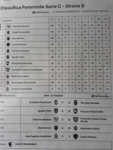 Prossimo turno: Crotone-Sant’Egidio, Ternana-Formello, Res Roma-Lecce, Trani-Monreale, Chieti-Pescara. Riposa Palermo