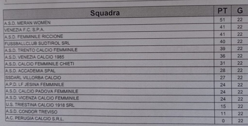 Un’importante curiosità. La giovanissima Jessica Cannarsa, 16 anni, portiere che sta giocando al posto dell’infortunata Lisa Falcocchia, domenica scorsa contro il Padova ha parato il suo 5° rigore. En plein: 5 su 5, tre con l’Under 17 e 2 con la squadra maggiore.