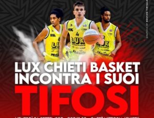 La Lux Chieti Basket incontra i tifosi. Domani, venerdì, alle18.30, nell’elegante cornice del Caffè Vittoria (tra gli sponsor del club) coach Massimo Maffezzoli e i biancorossi si presenteranno alla città in vista dell’ormai imminente inizio del campionato di serie A/2 previsto per domenica 3 ottobre al PalaTricalle “Sandro Leombroni” contro Forlì. “Sarà l’occasione – informa il sito della società – per conoscere giocatori e staff tecnico, il tutto in un contesto amichevole e informale”.