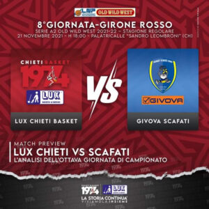 Torna una vecchia conoscenza domani (ore 18) al Palatricalle “Sandro Leombroni”: la Givova Scafati. Al termine della scorsa stagione furono scintille tra i biancorossi e i gialloblù campani, soprattutto nei playoff dopo la stagione regolare. Acqua passata, non ci sono scorie. C’è solo da dire che la Lux Chieti Basket vuole riannodare con un nuovo successo il filo delle tre vittorie consecutive spezzatosi domenica scorsa a Ravenna. Ma Scafati è capolista e le ambizioni sono quelle di sempre: la promozione. Che ne dice coach Maffezzoli? “Scafati arriva dalla prima sconfitta stagionale, è una squadra con rotazione a dieci, tutti i giocatori hanno un minutaggio simile, il che significa generale coinvolgimento di tutti gli effettivi – ha dichiarato il tecnico allo Staff Comunicazione del club – Rispetto alle edizioni passate in questa stagione con l’arrivo di coach Rossi hanno deciso di puntare sul gruppo. Ne è uscita una squadra equilibrata che non presenta punti deboli. Sono meritatamente primi in classifica. Ovviamente non ci aspetta una partita semplice, arrivando dall’unico stop stagionale vorranno riprendere subito il loro ruolino di marcia, prevedo da parte loro una gara di grande aggressività. Noi dobbiamo essere bravi a rimanere in partita, a non demoralizzarci e a non calare in termini di energia se ci saranno dei momenti negativi. Bisognerà restare costantemente concentrati nel cercare di impattare una disparità fisica che rimane importante”. Cosa chiede ai suoi? “Dai miei ragazzi mi aspetto che venga fornita una prestazione di squadra, che li veda coinvolti e solidi nei quaranta minuti, perché quando si gioca contro una squadra con il livello di Scafati non ci si può permettere di giocare solo tre quarti o qualche minuto in più, cosa che abbiamo già provato sulla nostra pelle contro Forlì. Dobbiamo fornire una prestazione importante ed è chiaro che confidiamo anche nell’apporto del pubblico”. Molto atteso è l’esordio di Lips, l’estone arrivato in settimana. “Con l’innesto di Karl innanzitutto riallunghiamo le nostre rotazioni con un nuovo giocatore, fatto molto importante perché ci siamo trovati di colpo carenti nel reparto lunghi, è chiaro che bisogna dargli il tempo di inserirsi specie dal punto di vista tecnico, cercheremo di inserirlo il prima possibile in quelli che sono i meccanismi già acquisiti dal gruppo”.