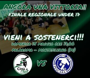 L’under 17 domenica al Palaroma di Montesilvano sarà impegnata nella finale che assegnerà il titolo di Campione d’Abruzzo contro il Castellammare con inizio alle 17. I ragazzi di Nucilli dopo aver conquistato la Coppa Abruzzo cercano di fare una strepitosa doppietta che li potrà portare a giocarsi poi il titolo nazionale.