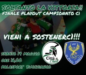 In casa Città di Chieti ci si prepara al meglio per questo fine settimana che si preannuncia di fuoco. La società del pres La Valle è impegnata nella finale playout a Bucchianico domani alle ore 16 contro La Fenice Avezzano: ai neroverdi basterà non perdere per rimanere in C1. Capitan Di Muzio e co. hanno bisogno di una cornice di pubblico massiccia, una squadra molto giovane che merita la permanenza nel massimo campionato regionale.