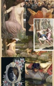 Il mito di Eco e Narciso, è una delle storie più affascinanti e complesse della mitologia greca. Racconta l’amore tragico tra Eco, una ninfa condannata a ripetere solo le ultime parole degli altri, e Narciso, un giovane estremamente bello che si innamora della propria immagine riflessa nell’acqua. Questo mito può sembrare semplicemente una poetica storia d’amore conclusa in tragedia, ma può essere anche occasione di riflessione su diversi temi: l’identità, l’autosufficienza, l’amore non corrisposto, il desiderio di fusione con l’altro.